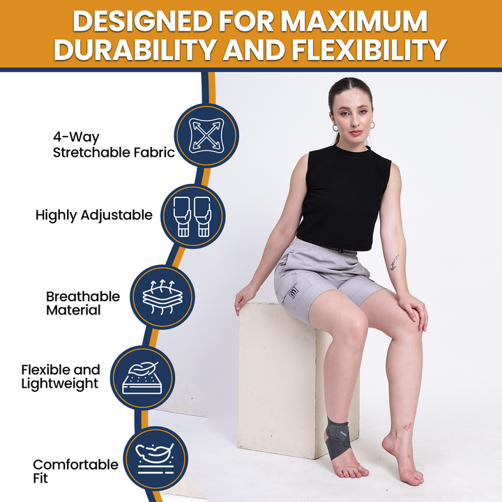 A supportive ankle binder designed to provide firm compression and stability. Helps reduce pain, swelling, and strain from sprains, overuse, or minor injuries while allowing comfortable movement during daily activities or sports.