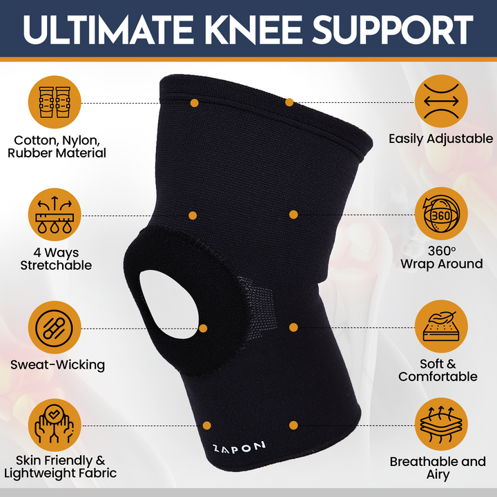 Zapon's Open Patella Knee Cap offers focused compression around the knee while keeping the patella exposed to reduce pressure and enhance comfort. Ideal for relieving discomfort from sprains, strains, overuse injuries, or mild instability, it supports natural knee movement and provides stability during daily activities, exercise, or rehabilitation.