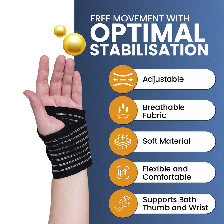 - Stabilises wrist and thumb to reduce pain and prevent further injury